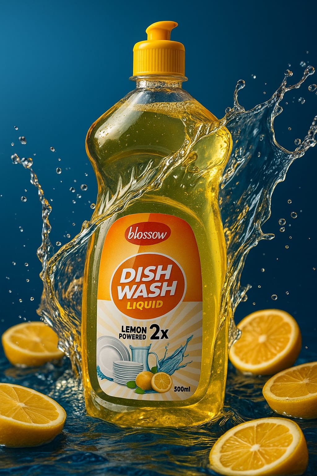 Blossow Dish Wash removes tough grease and oil in seconds, even from pots and pans. It leaves your dishes shiny and fresh without harming your hands. Just a few drops clean more dishes, so you save money too. Strong on stains, soft on hands.